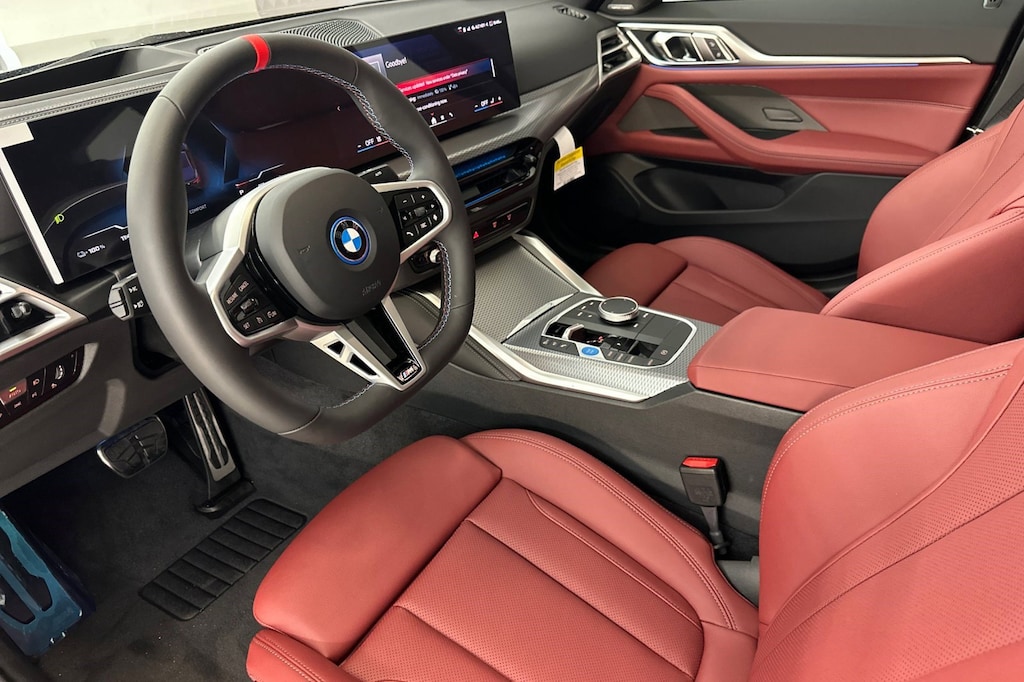 This BMW i4 boasts a Electric engine powering this Automatic transmission. WHEELS: 19" X 8.5" FR 19" X 9.0" RR M DOUBLE-SPOKE -inc: Bicolor black, Style 861M (STD), TACORA RED, PERFORATED SENSATEC UPHOLSTERY, SHADOWLINE PACKAGE -inc: M Sport Brakes w/Red Calipers, M Sport Package Pro, M Shadowline Lights.