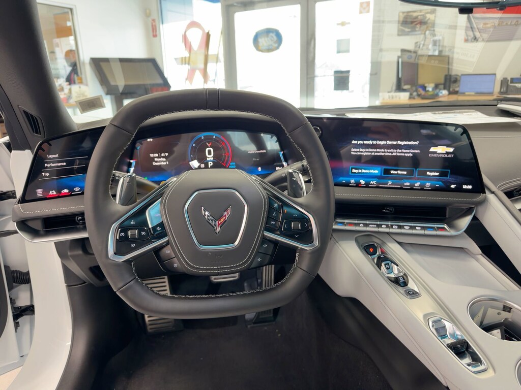 Windows, power with driver and passenger Express-Down/Up, Wi-Fi Hotspot capable (Terms and limitations apply. See onstar.com or dealer for details.), Visors, driver and passenger illuminated vanity mirrors, covered, Vehicle health management provides advanced warning of vehicle issues, Universal Home Remote includes garage door opener, 3-channel programmable, located on driver visor, Transmission, 8-speed dual clutch, includes manual and auto modes, Traction control, all-speed, Tires, 245/35ZR19 front and 305/30ZR20 rear, blackwall, all-season, performance, Theft-deterrent system, vehicle, push button start, immobilizer and audible visual alarm, Theft-deterrent system, electrical, unauthorized entry, activates the horn, Theft deterrent sensor, vehicle interior movement, Theft deterrent sensor, vehicle inclination, Teen Driver a configurable feature that lets you activate customizable vehicle settings associated with a key fob, to help encourage safe driving behavior. It can limit certain available vehicle features, and it prevents certain safety systems from being turned off. An in-vehicle report card gives you information on driving habits and helps you to continue to coach your new driver, Suspension, Corvette standard, Steering, power, electric speed-sensitive, rack-and-pinion, variable ratio.