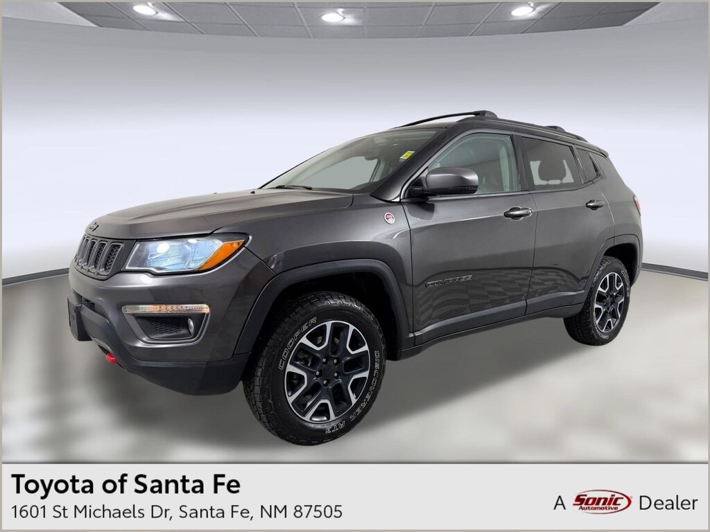 PLEASE SHOW PRIOR TO NEGOTIATION TO RECEIVE ADVERTISED PRICE. Granite Crystal Metallic Clearcoat 2020 Santa Fe, New Mexico Jeep Compass Trailhawk Stock number TLT116345, 4D Sport Utility with only 57792 miles. 4WD . This New Mexico SUV has a 2.4L I4 engine. Granite Crystal Metallic Clearcoat 2020 Jeep Compass Trailhawk 4WD 9-Speed 948TE Automatic 2.4L I4 Compass Trailhawk, 4D Sport Utility, 2.4L I4, 9-Speed 948TE Automatic, 4WD, Granite Crystal Metallic Clearcoat, Ruby Red/Black Cloth, Cold Weather Group, Heated Front Seats, Heated Steering Wheel, Remote Start System, Windshield Wiper De-Icer.